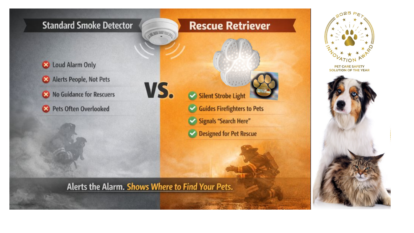 Created by a 21-year veteran fire captain, Rescue Retriever gives first responders a critical edge in locating pets during residential fires. After witnessing too many pets lost in tragedies, he designed a solution to save lives and protect families. Now, pet owners can have peace of mind knowing their furry loved ones are safer than ever.